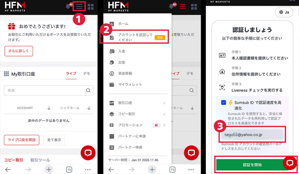 HFMのアカウント開設が完了した方はKYCの確認に進んで下さい。