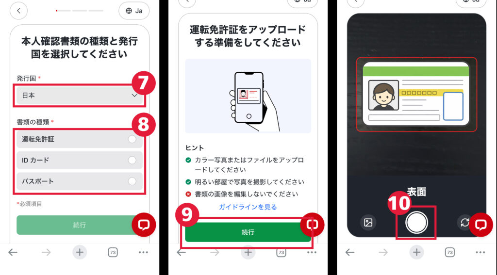 ここではスマホ画面を元にKYC登録の流れを紹介します。