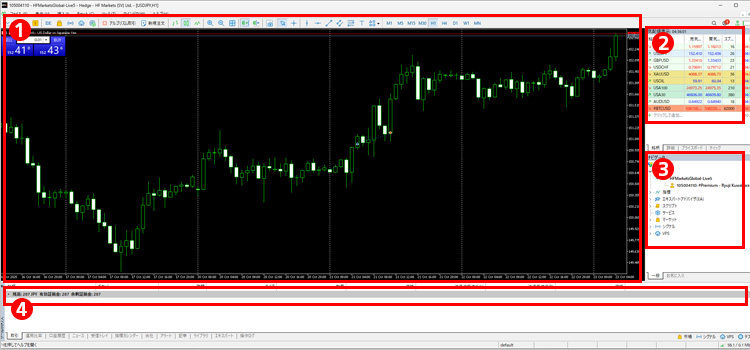 MT5を始めて使う場合、大きく分けて4カ所チェックすれば大丈夫です